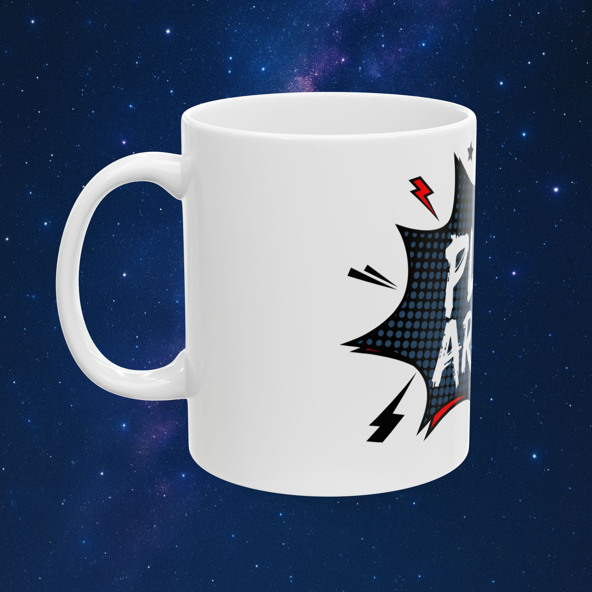 All White Ceramic Mug – Funny “PLOT ARMOR” Mug for Everyday Heroes & Go-Getters | 11oz Ceramic Coffee Cup | Pop Art Motivation Design
